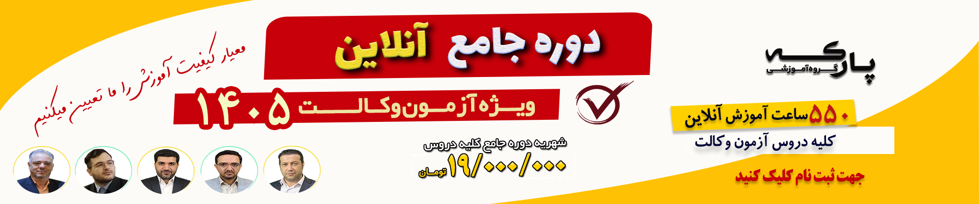 پک کامل خدمات گروه آموزشی پارکه شامل: 550 ساعت کلاس آنلاین ویژه کلیه دروس آزمون وکالت 200 ساعت دوره تست لند (دوره...