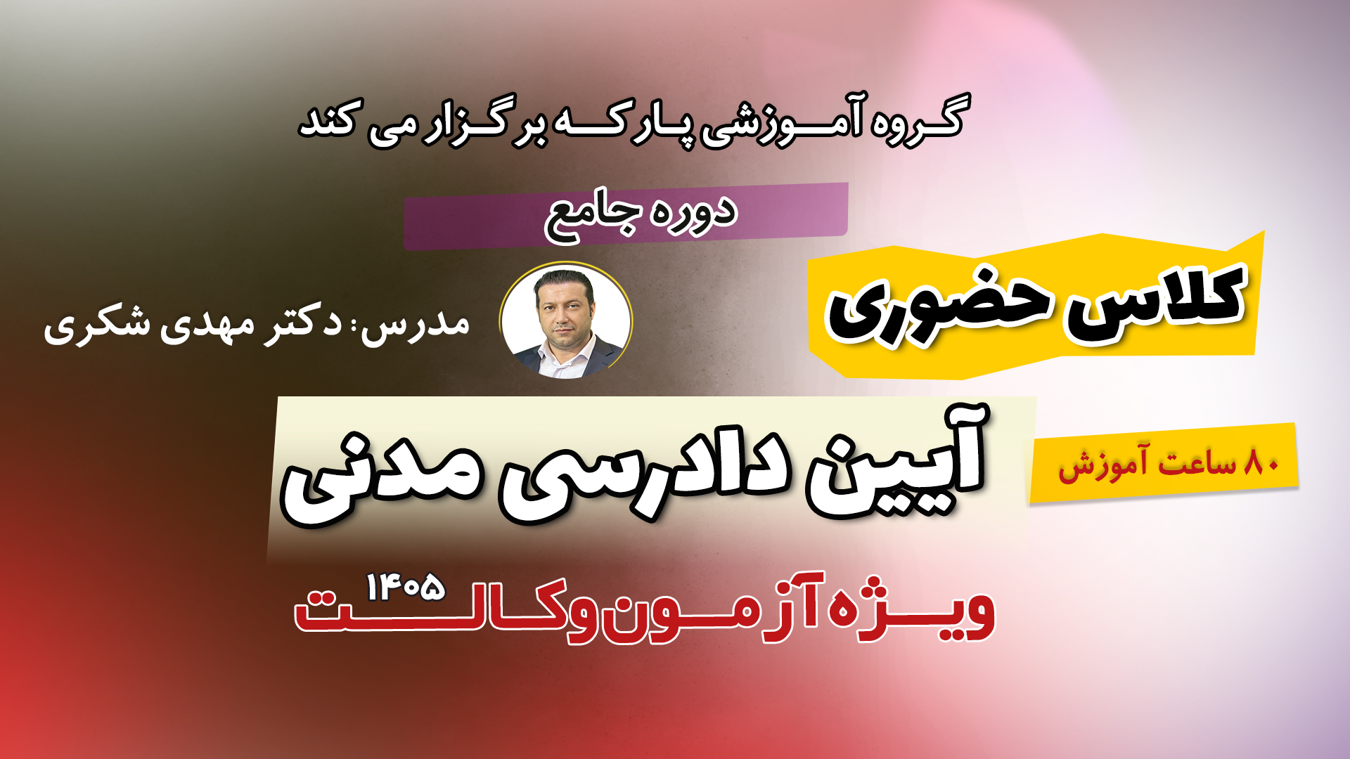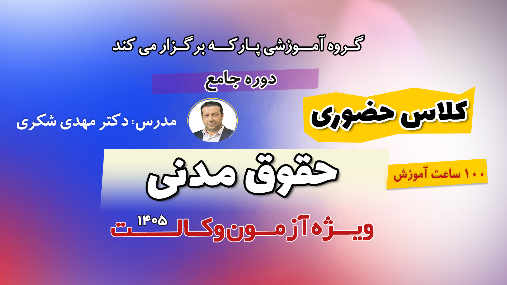 شامل 300 ساعت تدریس سه درس حقوق مدنی، آیین دادرسی مدنی ، حقوق تجارت توسط دکتر مهدی شکری آیا این دوره برای...